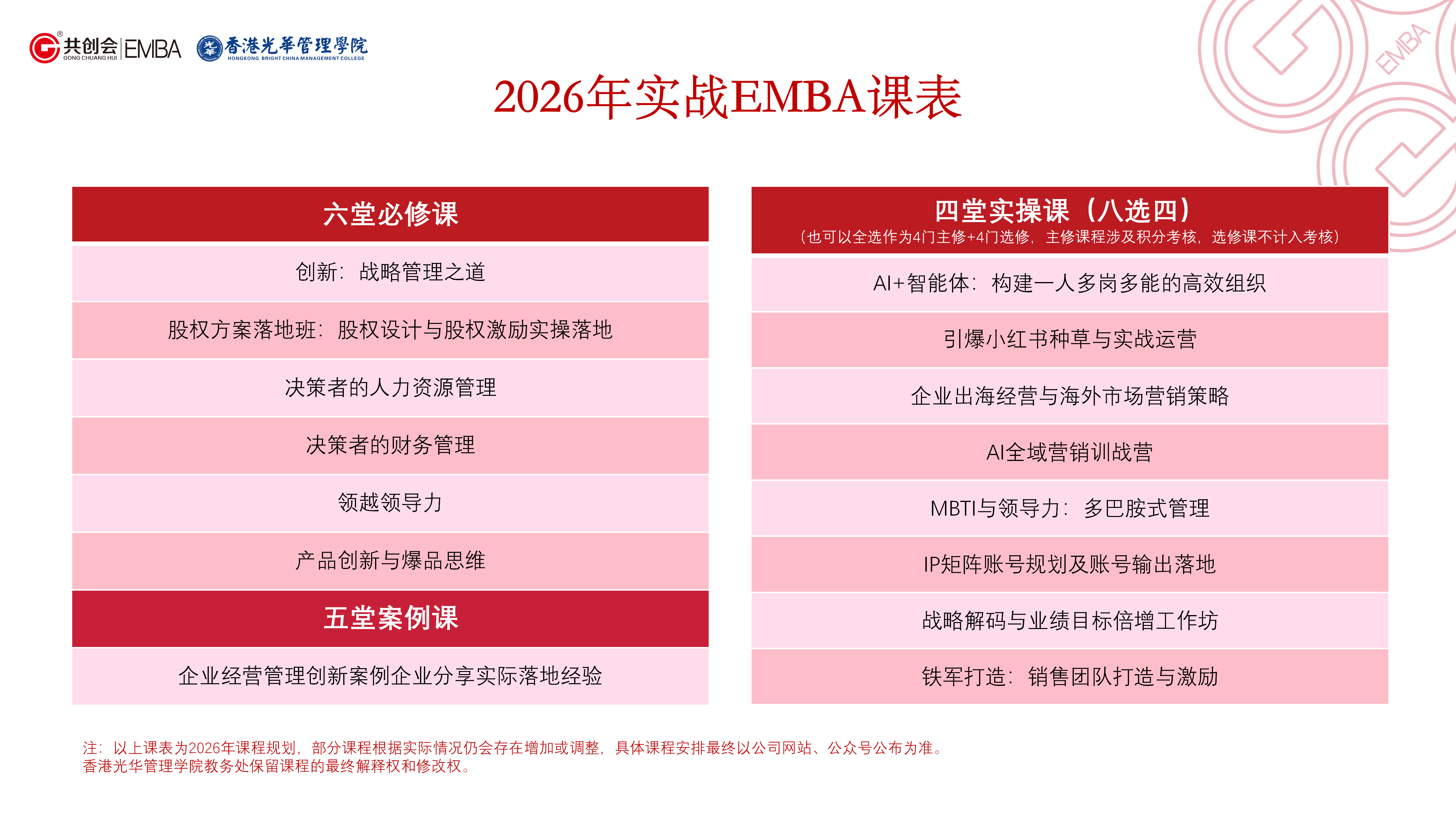 2、認同光華共創會EMBA文化,能夠保證上課時間;
